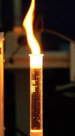 Ngọn Đuốc Nước: Một ống nghiệm chứa nước muối sinh ra ngọn lửa 4000oF. (Ảnh: Courtesy ISM) |