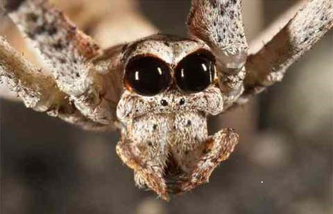 Nhện thường được biết đến như động vật có nhiều mắt (mặc dù điều này rất khác nhau giữa các loài nhện, một số có 2 hay 4 mắt trong khi số khác có tới 6 hoặc 8 mắt). Loài nhện mặt quỷ sở hữu 6 mắt nhưng trông cứ như chỉ có 2 mắt vì cặp ở giữa phát triển to lớn hơn hẳn 2 cặp còn lại. Đây là một sự thích nghi cho lối sống về đêm. Nhện mặt quỷ được trời phú cho tầm nhìn ban đêm tuyệt vời, không chỉ vì đôi mắt to lớn mà còn vì một lớp tế bào cực kỳ nhạy cảm ánh sáng bao phủ bên ngoài chúng. Lớp màng này nhạy cảm đến mức trong thực tế, nó bị phá hủy vào lúc bình minh và một lớp màng mới được sản sinh ra mỗi đêm. Các con mắt của nhện mặt quỷ được coi là dị thường vì chúng có thị lực hoàn hảo vào ban đêm mặc dù thiếu tapetum lucidum – một tấm màng phản chiếu vốn giúp các loài nhện khác (và các động vật ăn thịt khác như mèo) nhìn được trong điều kiện ánh sáng yếu. Các nhà khoa học tin rằng, nhện mặt quỷ có khả năng quan sát ban đêm tốt hơn cả mèo, cá mập và cú (động vật vốn có thị lực ban đêm tốt hơn so với con người tới 100 lần).