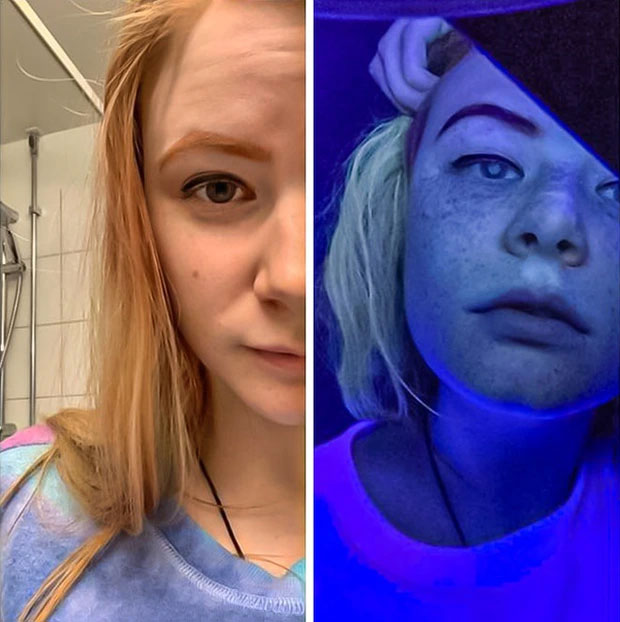 Không ai nghĩ rằng làn da mịn màng của mình có thể trông sẽ rất “màu sắc” dưới tia sáng tia UV đâu nhỉ?